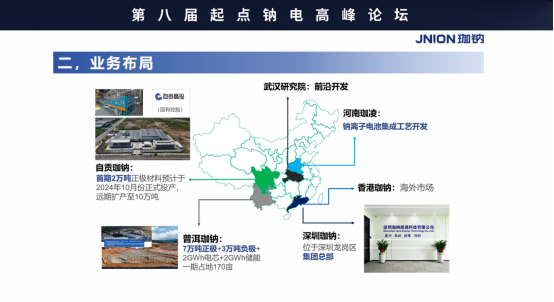 在演讲中,范博士还介绍了珈钠能源的整体布局。自2022年成立以来,公司始终专注于铁基聚阴离子正极和生物质硬炭负极技术路线,具备从正极、负极、电解液到电池工艺的全套解决能力。目前,珈钠能源已在深圳、普洱、自贡、武汉和香港建立研发与生产基地,形成覆盖研发、制造和海外市场拓展的全链条布局。其中,自贡基地万吨级产线已顺利投产,普洱基地正在推进7万吨正极和3万吨负极产能建设,武汉研究院承担前沿工艺研发,深圳总部作为集团运营,香港公司则面向海外市场。