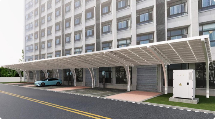 8个光伏车棚,59.4kW光伏系统,60kW/116kWh 钠电储能柜,日均发电240kWh,真正实现零碳充电